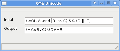 Dieses kleine Programm wandelt Text wie ".and." "&&" u.s.w. in Unicode Zeichen um.